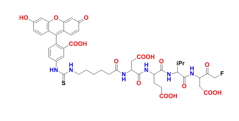 胱天蛋白酶的活化在細(xì)胞凋亡中發(fā)揮著主要作用。FITC-C6-DEVD-FMK提供了在活細(xì)胞中靈敏檢測活化的胱天蛋白酶-3的方便手段。FITC-DEVD-FMK是細(xì)胞滲透性的,無毒的,并且不可逆地結(jié)合到活化的胱天蛋白酶-3在細(xì)胞凋亡。在FITC標(biāo)記的可用于直接檢測活化的胱天蛋白酶的凋亡細(xì)胞可通過熒光顯微鏡,流式細(xì)胞儀,或熒光板讀數(shù)器進(jìn)行。